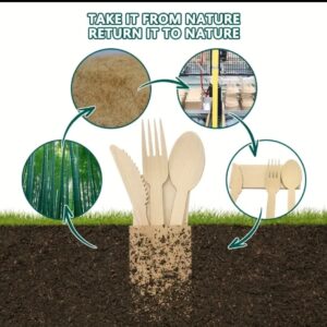 5 Packs of Bamboo Cutlery Sets – Eco-Friendly Disposable Tableware