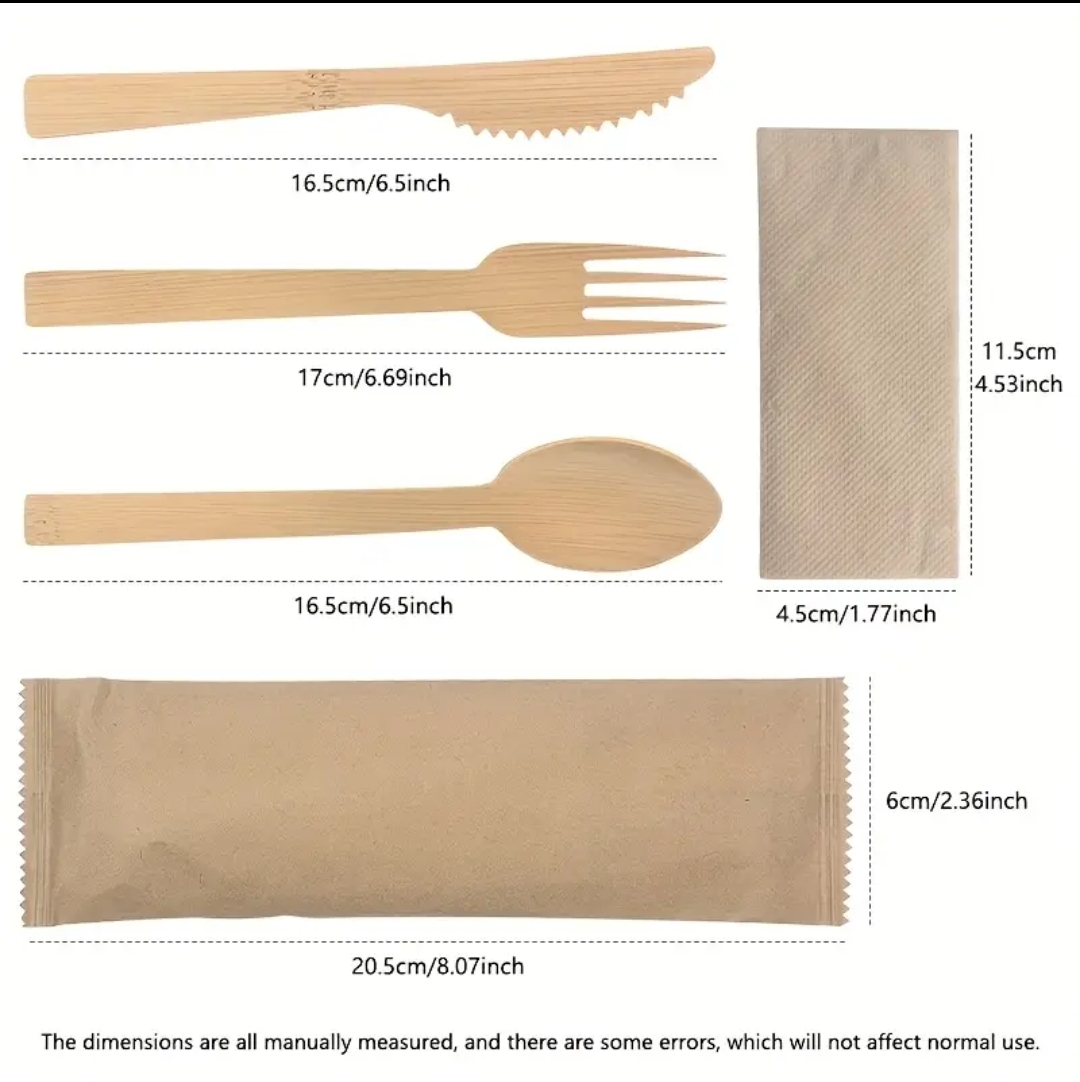 🌿 Bamboo Cutlery Set – Eco-Friendly Disposable Tableware