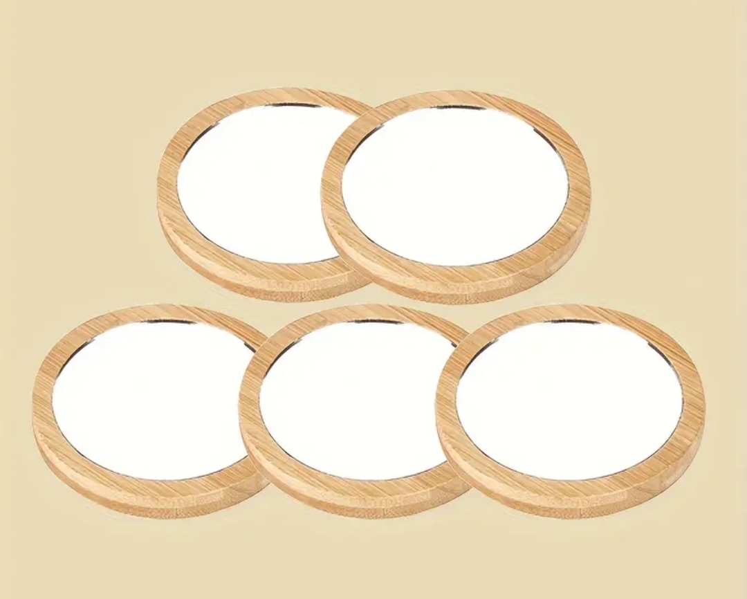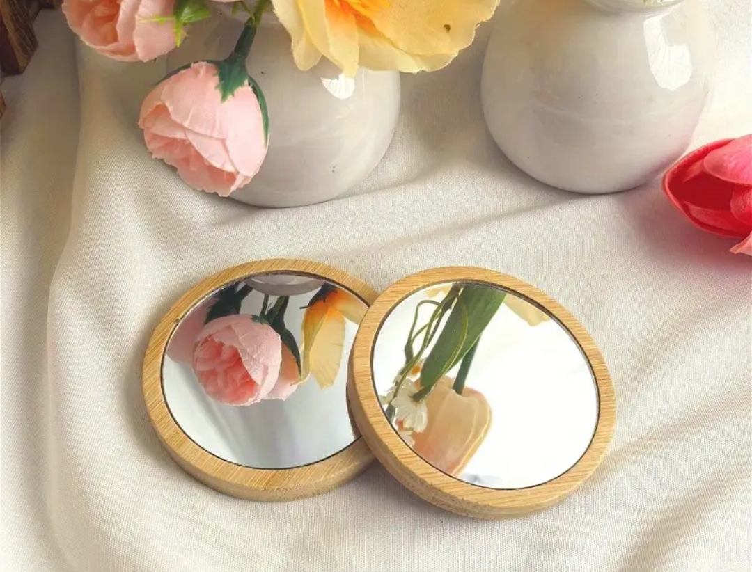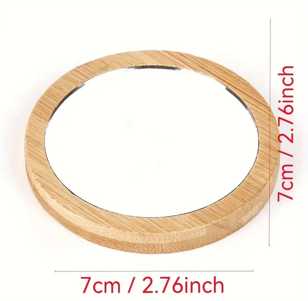 Elegant Bamboo Makeup Pocket Mirror – Portable & Travel-Friendly ( 1 Peice )